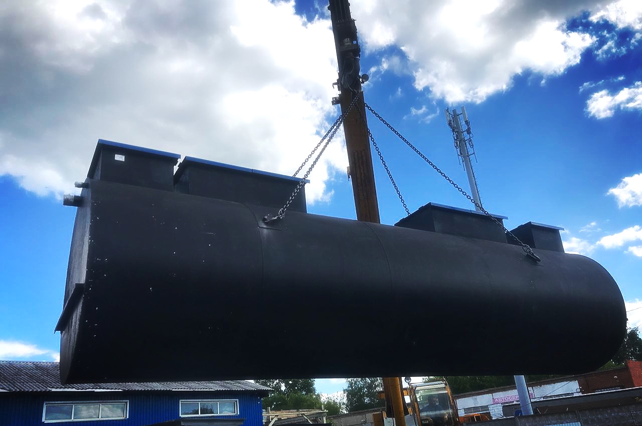 Габариты очистного сооружения: 2 емкости длиной 9800 / диаметром 2400 / весом 11800 кг.